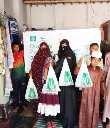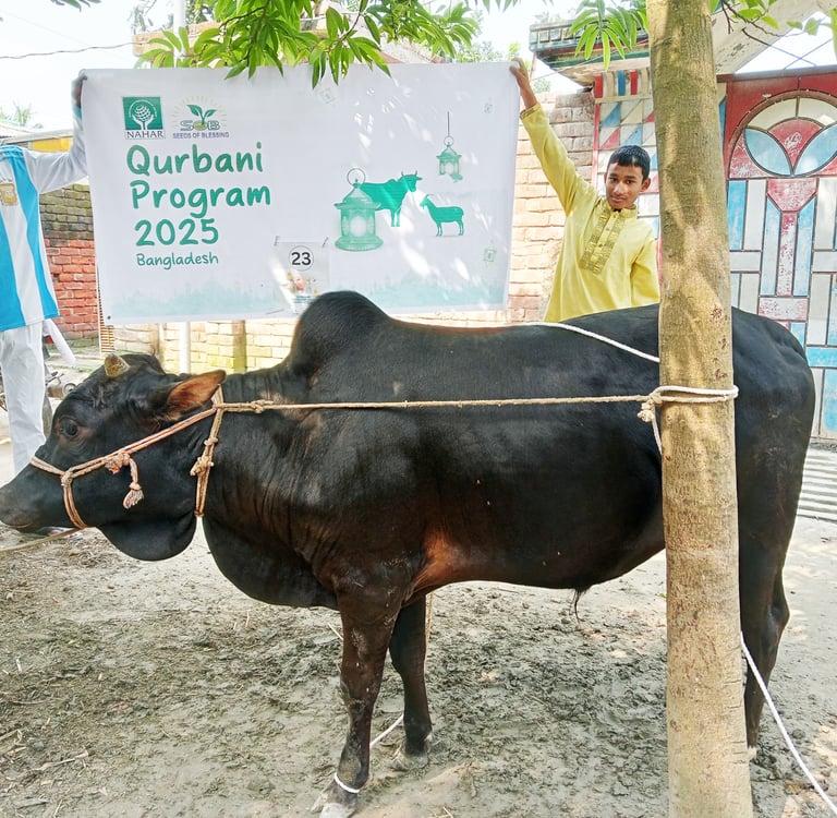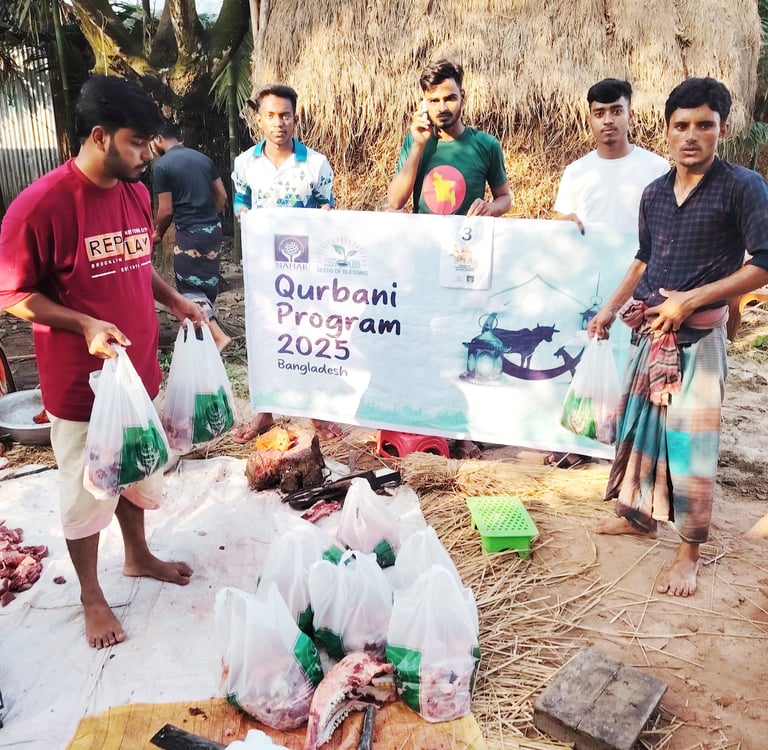 This year, through the blessings of Eid-ul-Adha, our Qurbani program successfully reached over 500 underprivileged families, bringing them the joy and spirit of this sacred occasion. With the generous support of our valued partners, Seeds of Sadaqah donated 7 cows and 12 goats, and Nahar contributed 24 cows for sacrifice. The meat was carefully processed, packed, and distributed among families in need across our working areas. This effort not only fulfilled the Sunnah of Qurbani but also brought smiles to hundreds of faces . We are deeply thankful to our donors for their trust and support, and we pray that Allah accepts their sacrifices and rewards them manifold for their kindness.